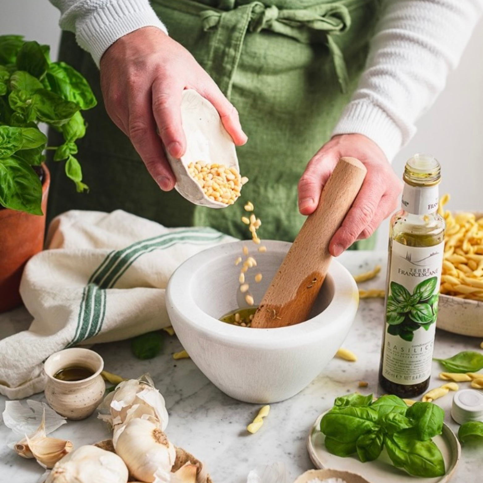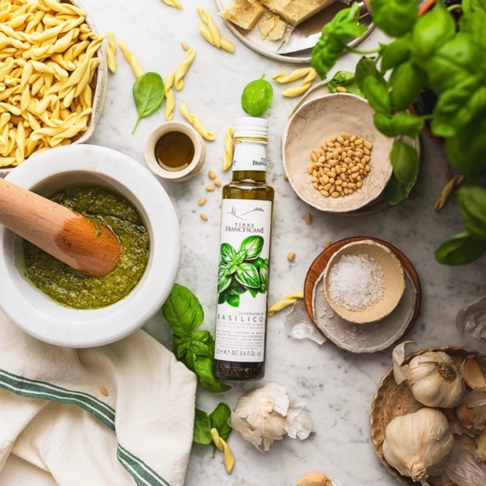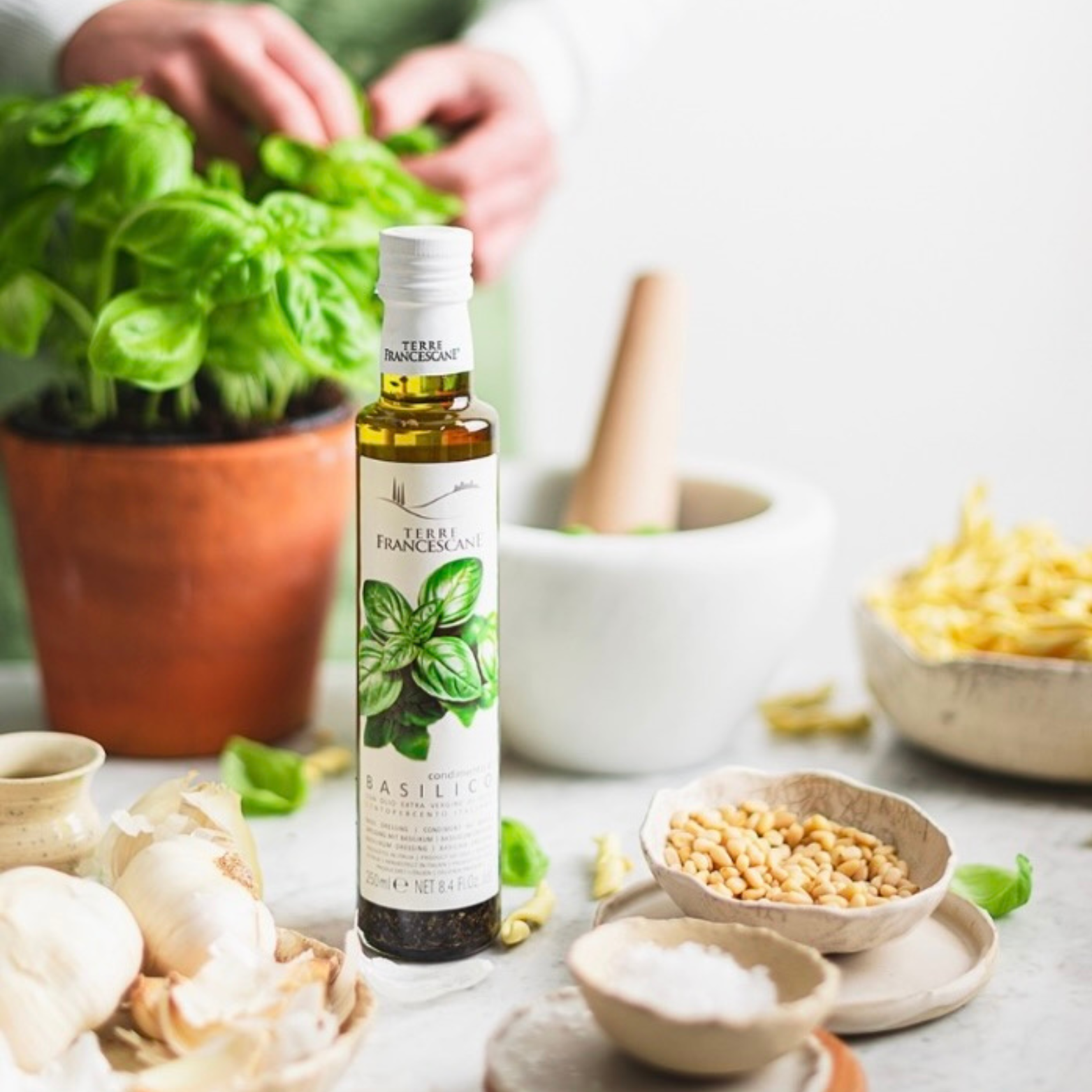 Zutaten: Italienisches natives Olivenöl Extra (97%), Basilikumblätter (2%), natürliches Basilikumaroma (1%).