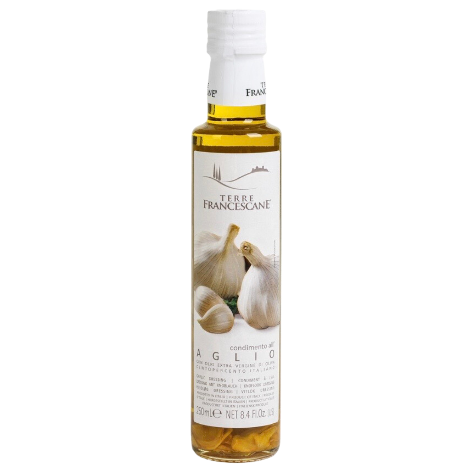 Zutaten: Italienisches natives Olivenöl Extra (92,5%), Knoblauchzehen (1,5%), natürliches Knoblaucharoma (0,5%).