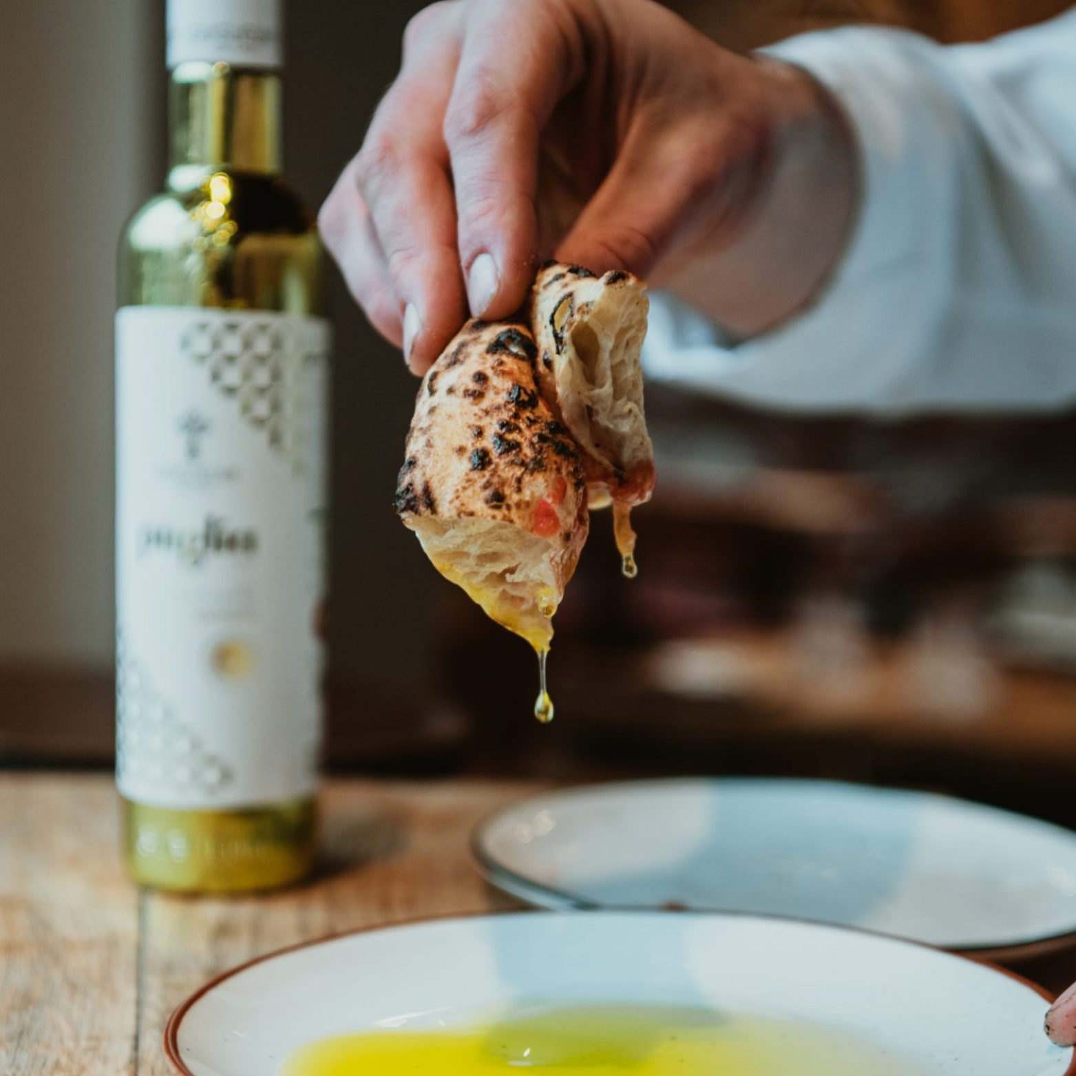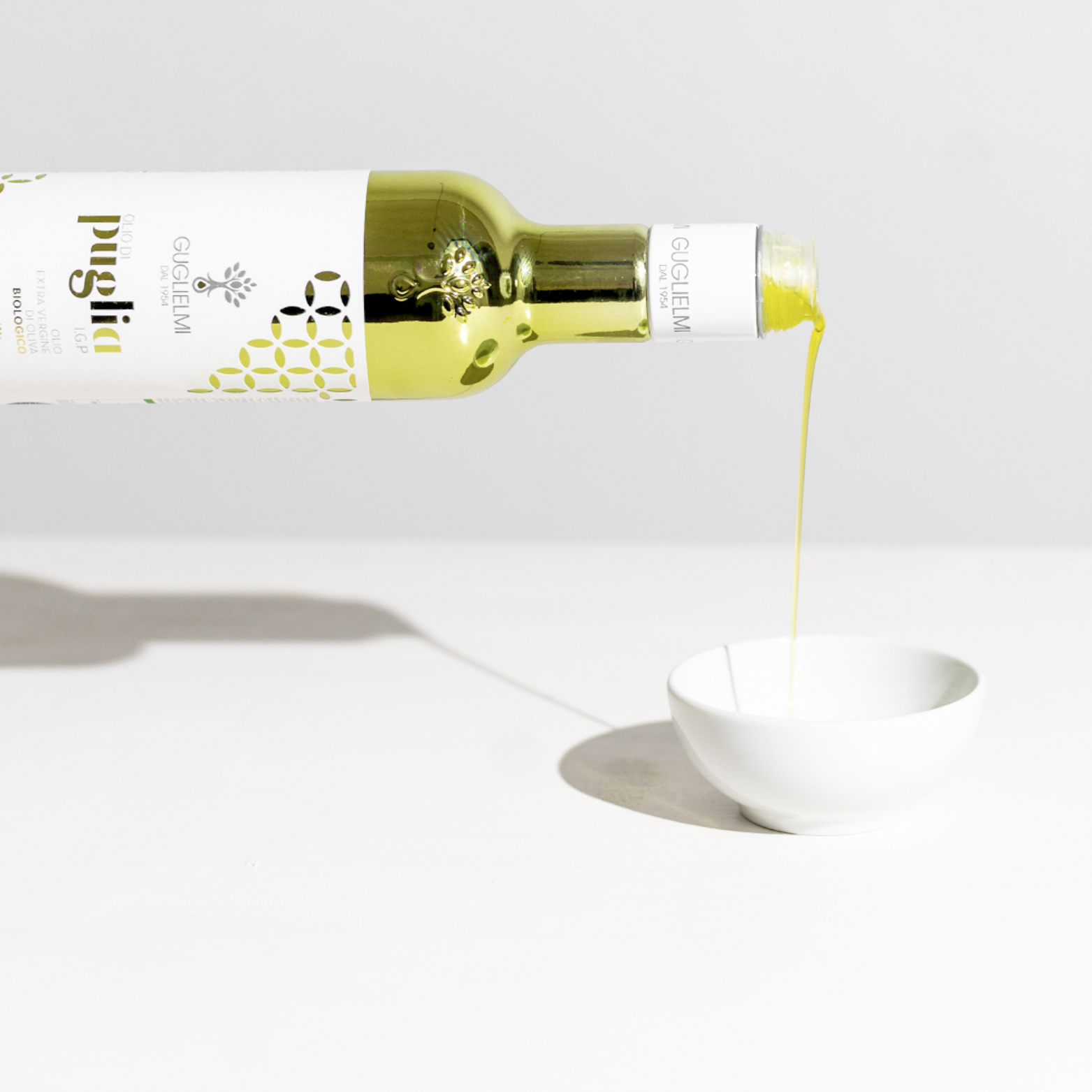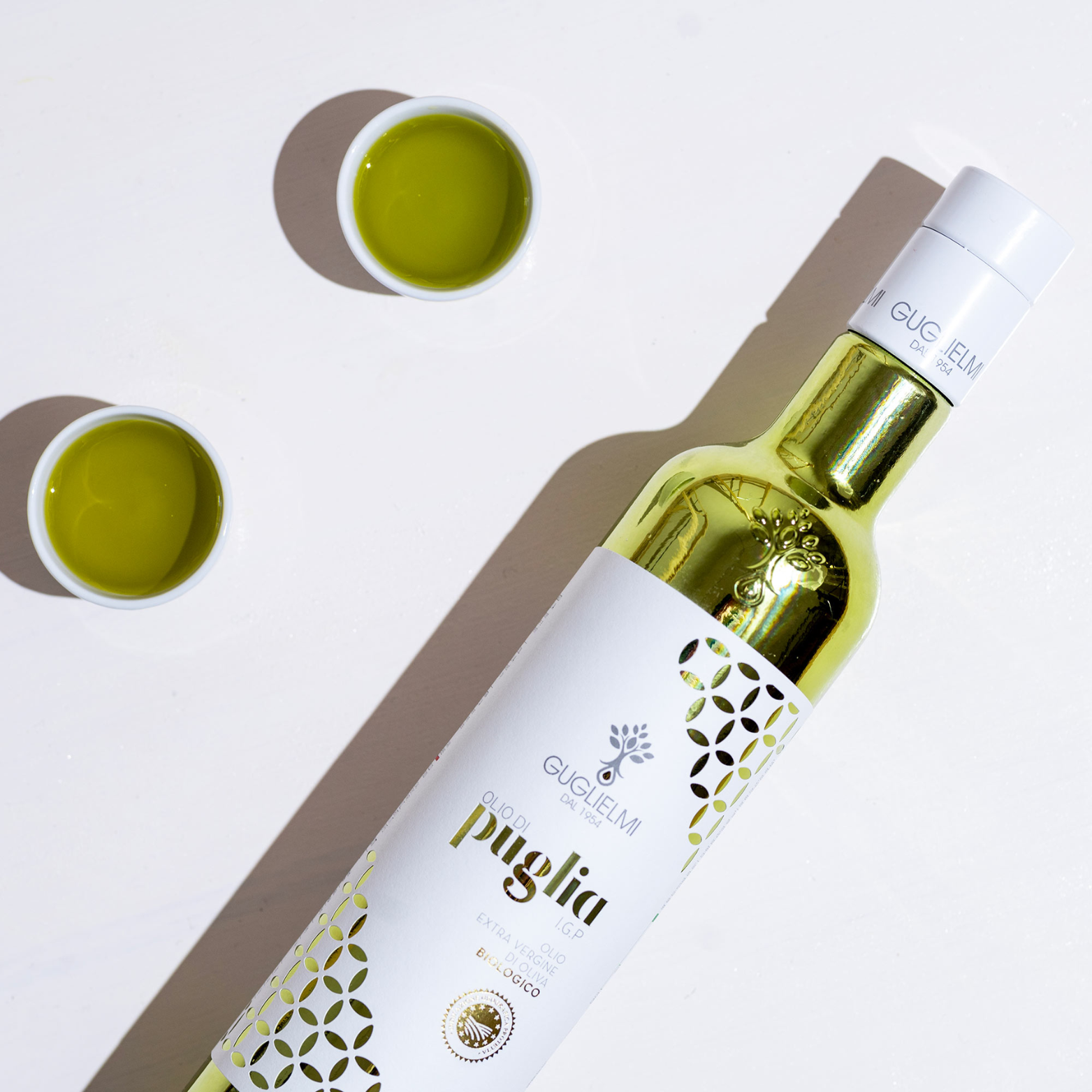 Olio di Puglia Bio g.g.A. wird ausschließlich aus biologischen Ogliarola-Oliven gewonnen, eine der bekanntesten Sorten Apuliens. Die Oliven stammen von alten Bäumen, die speziell für dieses Öl kultiviert werden. Direkt nach der Ernte kalt gepresst, bleibt das volle Aroma erhalten: Frische Mandel, Jasmin, dazu Noten von Gras, Artischocke und Olivenblatt.