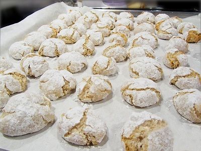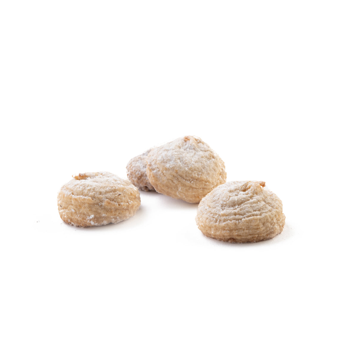 Zutaten: Zucker, Kichererbsenmehl, Sojamehl, Mandelmehl, Eiweiß, Dextrose, mod. Stärke, Süßstoff, Pflanzenöl, Kaliumsorbat, Wasser, Salz, Aromen. Mit Kristallzucker bestäubt.