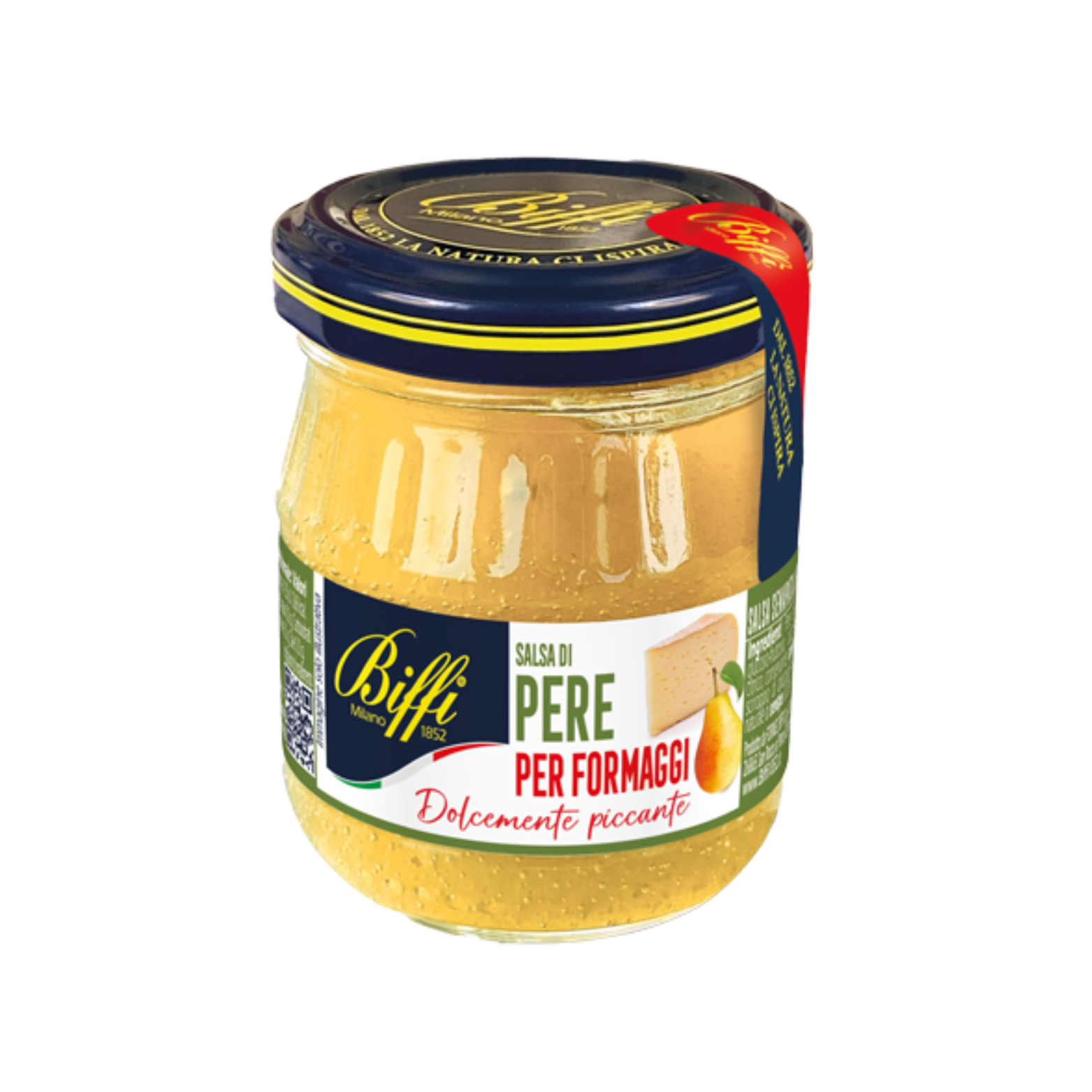 ZUTATEN: Kandierte Birnen 72% (Birnen, Glukose-Fruktose-Sirup, Zucker, Säureregulator: Zitronensäure, Konservierungsmittel: SCHWEFELDIOXID als Rückstand), Glukose-Fruktose-Sirup, pflanzliche Ballaststoffe, natürliches Senfaroma, natürliche Aromen.