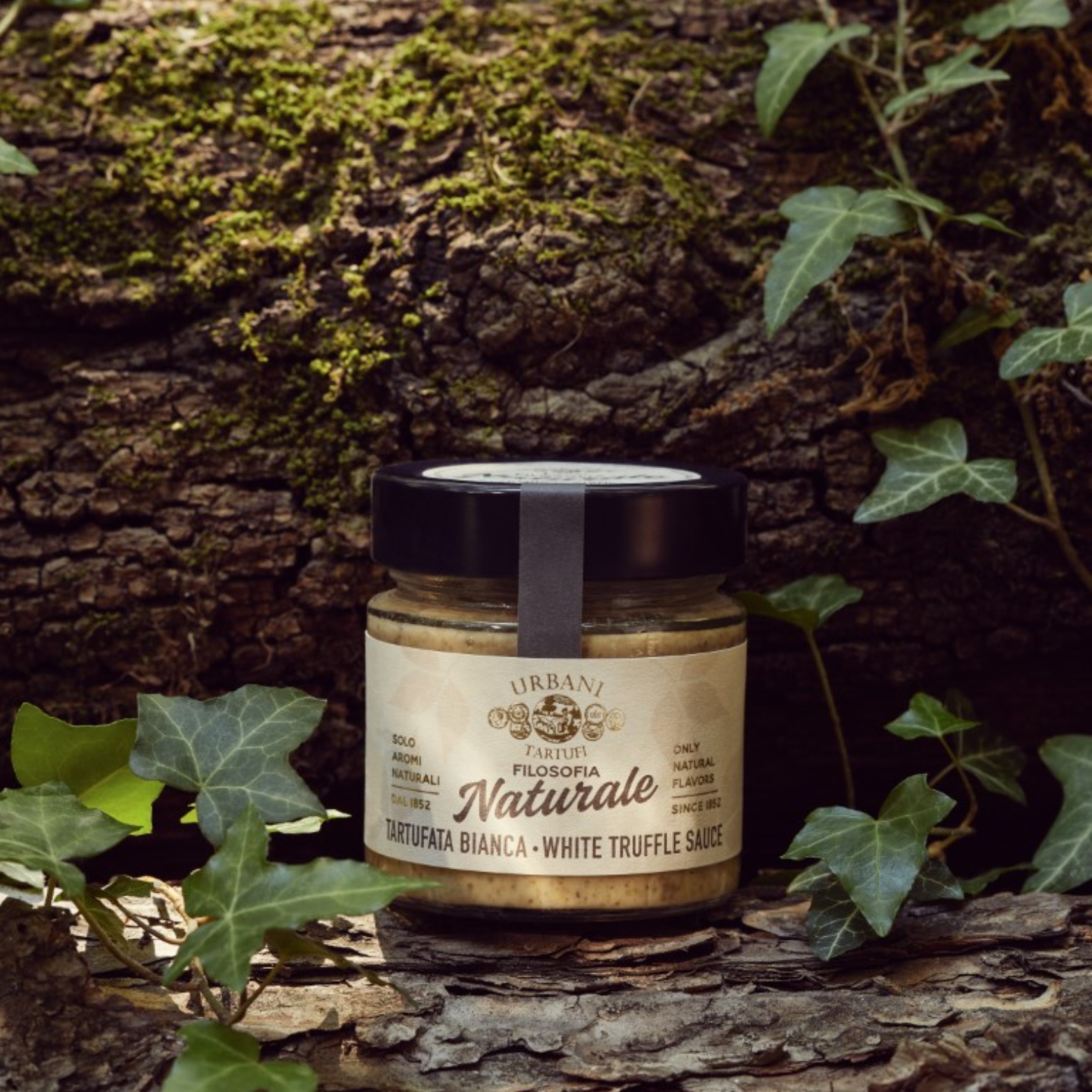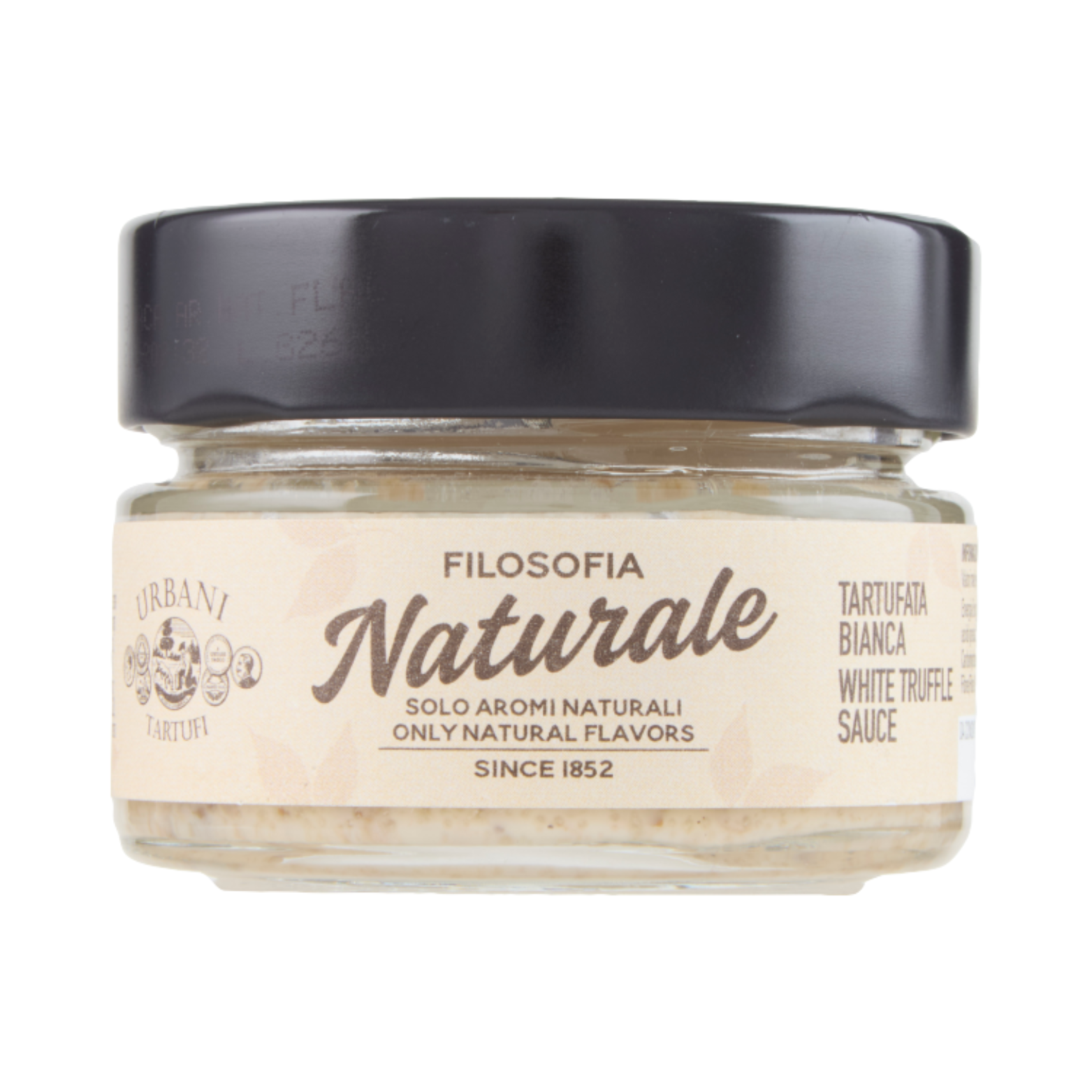 Zutaten: Schwarzer Pfeffer, Weißtrüffel 1% (Tuber Manatum Pico), Weißtrüffel 3% (Tuber Albidum Pico), Sahne (Sahne aus Kuhmilch), Champignons 40% (Agaricus Bisporus), Zwiebel, Säureregulator: Milchsäure, Natives Olivenöl extra, Pflanzenfasern, natürliches Aroma, Weißwein, Molke, Salz, Emulgator: Sonnenblumenlecithin.